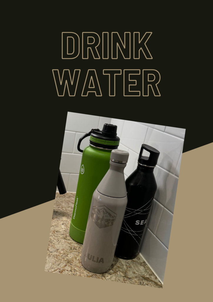 Dehydration can leave you feeling sluggish and foggy. Before reaching for coffee, start your morning with a full glass of water. Keep a bottle nearby and sip throughout the day—you might be surprised how much more alert you feel! I use 3 bottles so that I can track how much I’ve drunk.