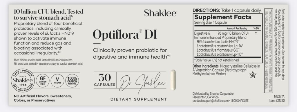 If you’re recovering from antibiotics, Optiflora DI would likely be the better choice because it offers a broader spectrum of strains. However, neither contains Saccharomyces boulardii, which is particularly helpful for preventing antibiotic-associated diarrhea (especially from C. diff). If that’s a concern, you might want to add a separate supplement with S. boulardii alongside your Shaklee probiotics.
