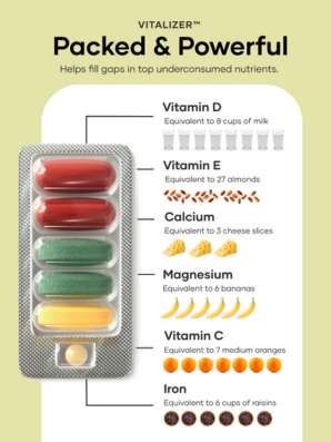 Vitalizer – A daily strip of advanced nutrition with essential vitamins, minerals, omegas, probiotics, and antioxidants for all-day energy and optimal health.